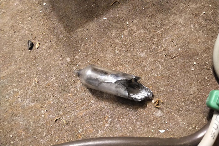 Unfortunately, during the rewiring a mercury switch that controlled the state of the directory lamp when the booth door is opened/closed was shattered, spilling toxic mercury on top of the booth. At this point work halted until powdered sulfur was obtained and scattered around the contaminated area. There it was left to sit for several months so it could safely amalgamate the mercury. Work resumed after this amalgam was sucked up with a wet/dry vacuum.